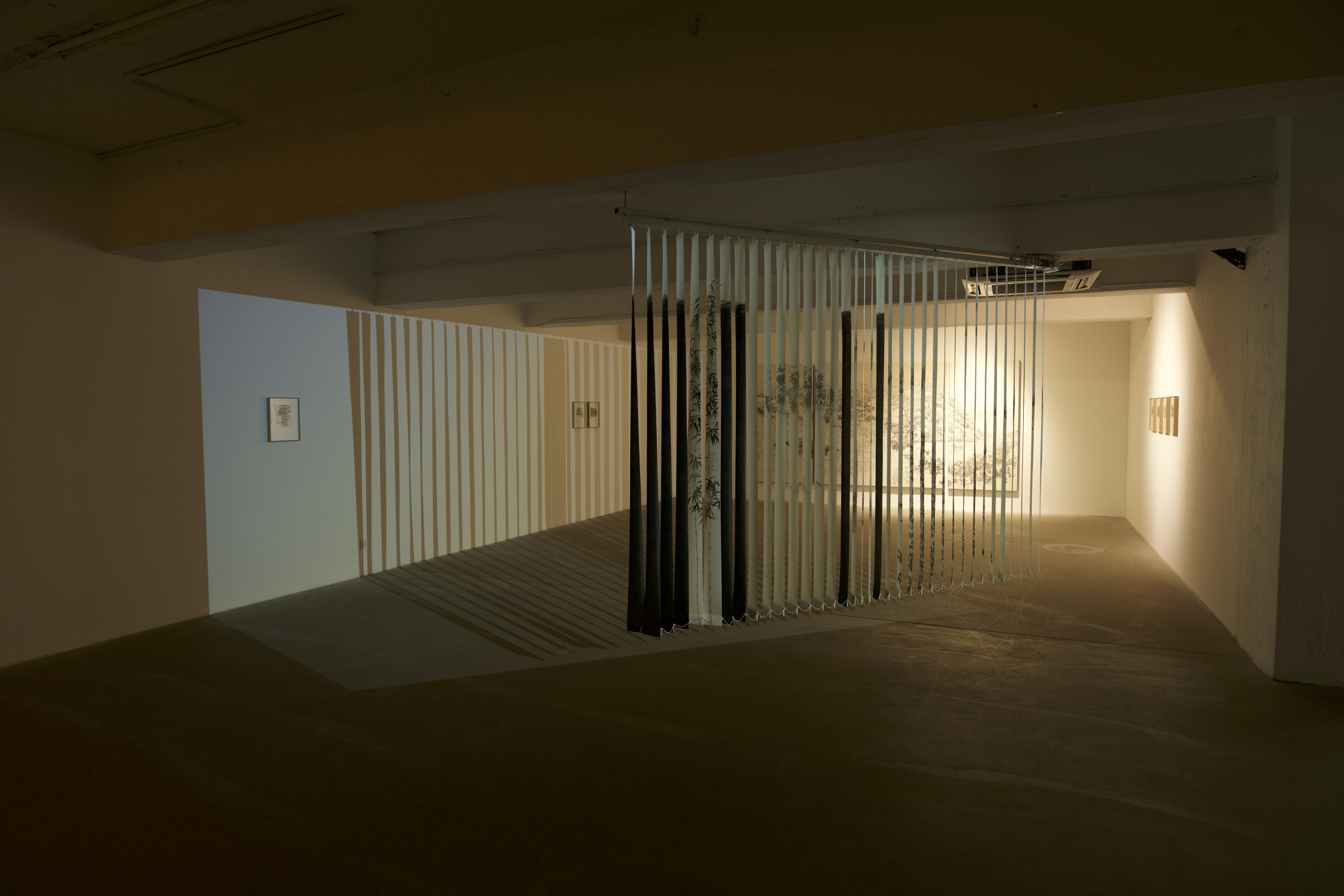 The artist is well aware of the contrast between traditional ink painting techniques and current exhibition practice. This is apparent not only in the incorporation of light into his works but also in his use of window blinds and screens as hanging scrolls. A traditional form of presentation that goes back hundreds of years, scroll paintings usually hang suspended from a wooden rod. Tang, however, uses coloured fluorescent tubes instead - a choice that literally casts new light on an ancient practice.
